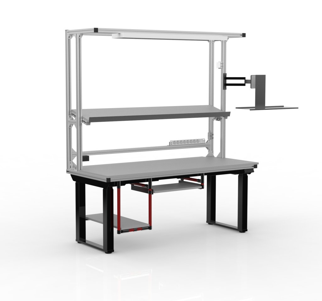 Uniwersalny stół warsztatowy do pakowania przesyłek. Kolor konstrukcji można dobrać odpowiednio do rur. Przy równym obciążeniu nośność wynosi 100 kg. Wymiary 2002 x 1803 x 803 mm. Stół nadaje się do sklepów internetowych, centrów logistycznych i magazynów.