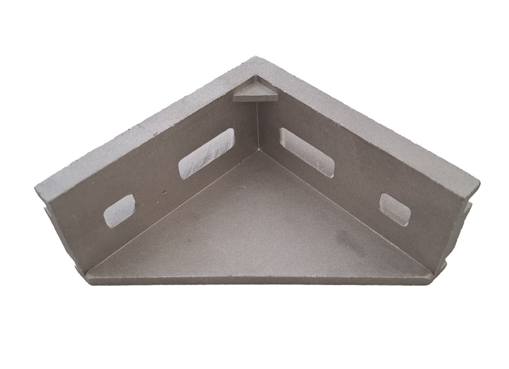 Kąt o kącie 90° do łączenia profili. Orteza boczna zapewnia dużą wytrzymałość stawów. Wymiary 60 x 28 x 60 mm. Materiały mocujące nie wchodzą w skład zestawu.