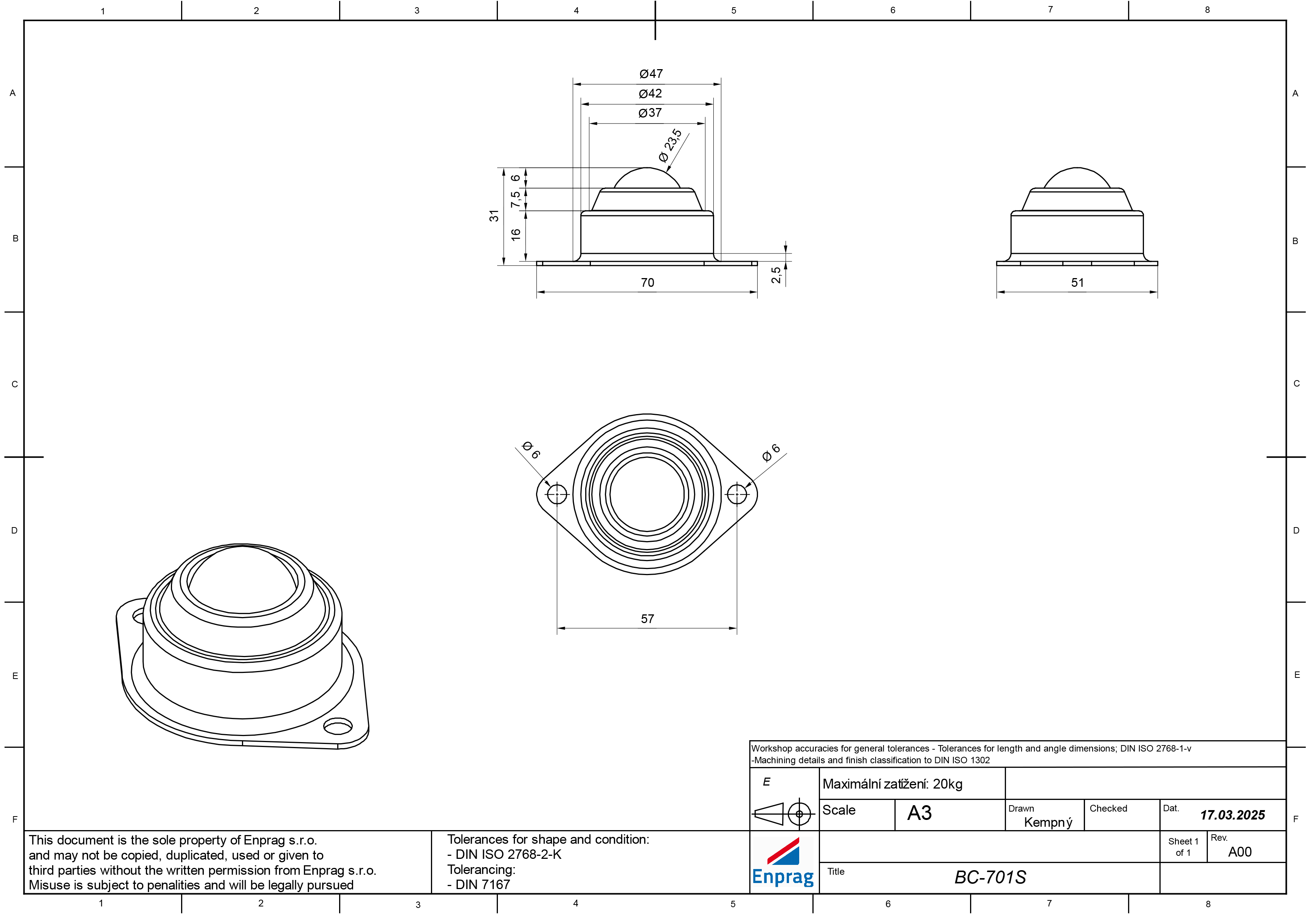 Kółko skrętne stalowe BC-701S, z płytką do mocowania na śruby, maksymalne obciążenie 20 kg. pełny opis i parametry
