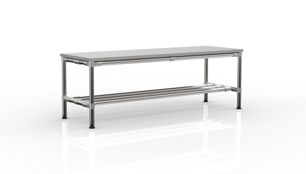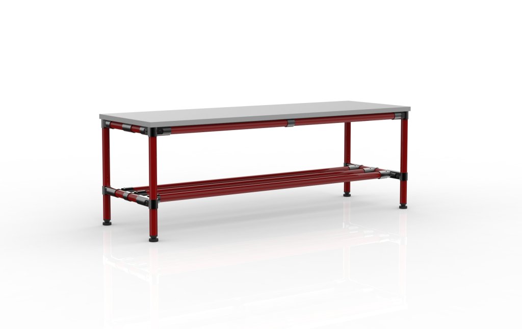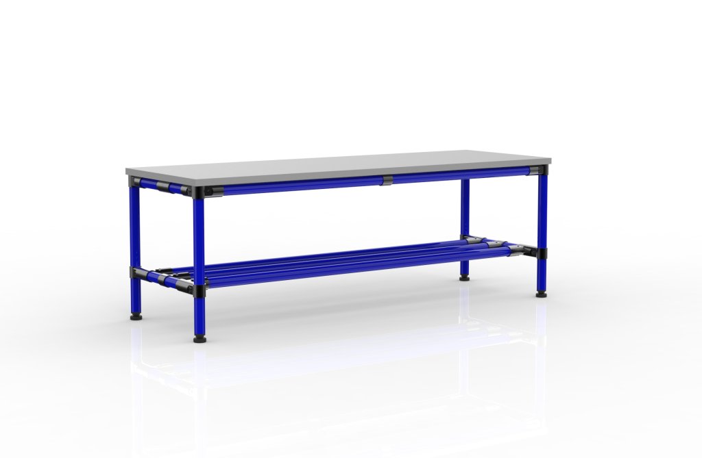Ławka robiona na zamówienie, wszystkie wymiary można dostosować do potrzeb klienta. Rury dostępne są w kilku kolorach oraz w wersjach ESD lub ze stali nierdzewnej.