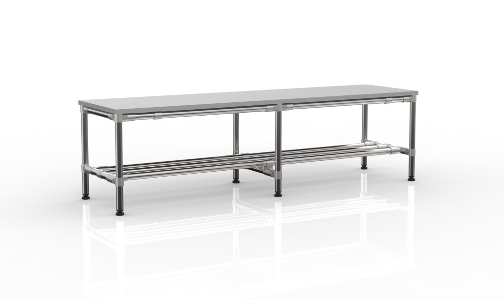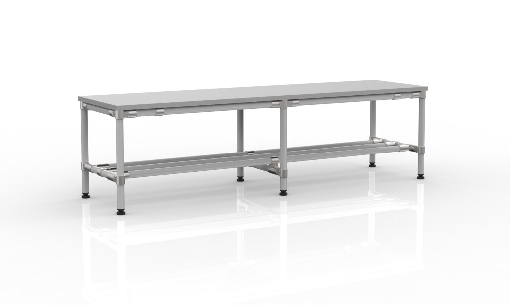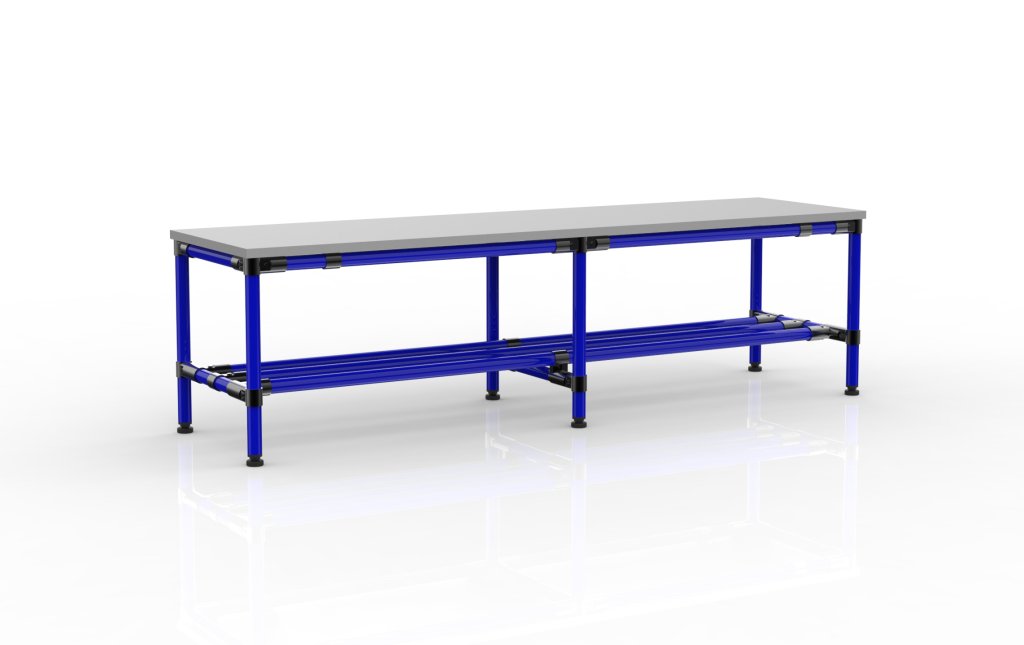 Ławka robiona na zamówienie, wszystkie wymiary można dostosować do potrzeb klienta. Rury dostępne są w kilku kolorach oraz w wersjach ESD lub ze stali nierdzewnej.