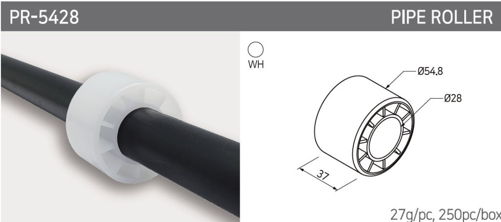 Łożysko ślizgowe z tworzywa sztucznego, typ PR-5428, kolor biały (WH), waga 27 g. pełny opis i parametry