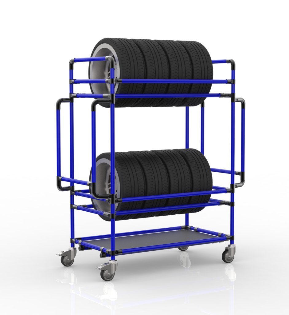 Regał na opony z systemu modułowego z rurkami z trzema półkami. Praktyczne przechowywanie do 12 opon na trzech poziomach. Idealny do opon o rozmiarach 16" do 20", regał zawiera cztery stopy kotwiące. Opony nie są w zestawie. Nośność półki 100 kg, całkowita nośność 300 kg. Wymiary: 2000 x 1127 x 465 mm.