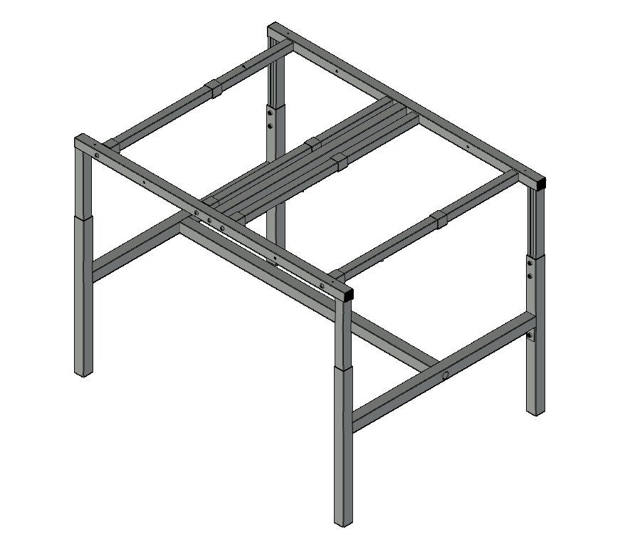 Podstawa stołu antystatycznego z regulacją wysokości, wykonana z solidnych profili stalowych. Wymiary 650 - 950 x 1500 x 700 mm.
