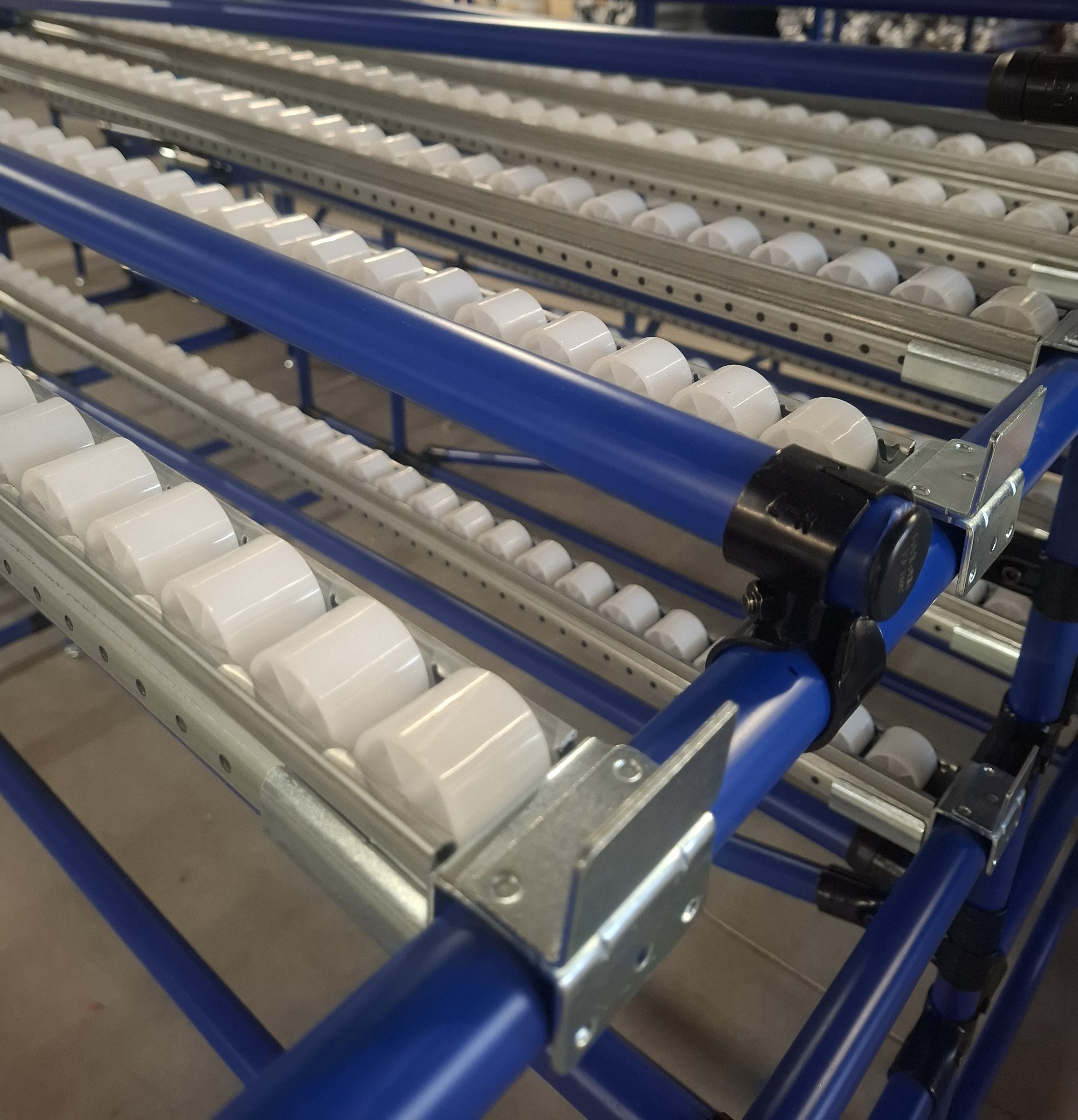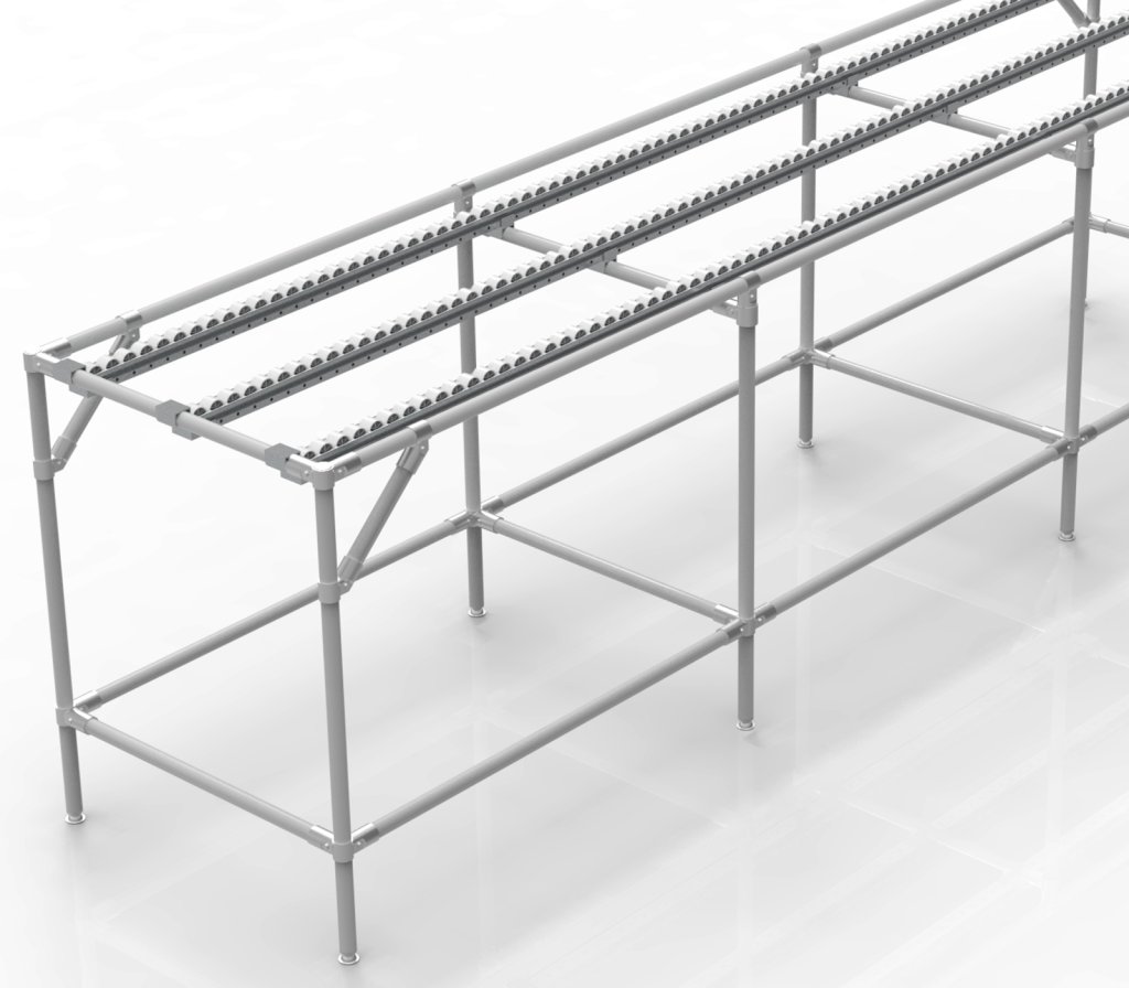System przenośników z zagłębionymi torami rolkowymi (znany również jako przenośniki rolkowe) jest idealny do płynnego transportu pojemników KLT, paczek i innych wyrobów jednostkowych. Dzięki modułowej konstrukcji rurowej system można łatwo dostosować do konkretnych potrzeb zakładu.