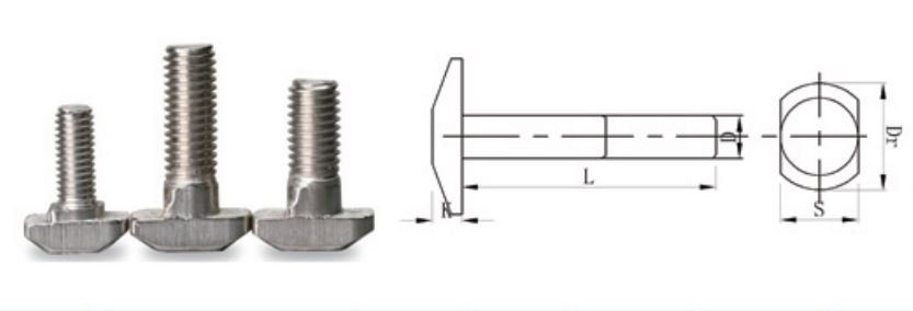 Śruba z łbem T do mocowania akcesoriów do profili aluminiowych. Długość śruby 16 mm. Waga 10 g.