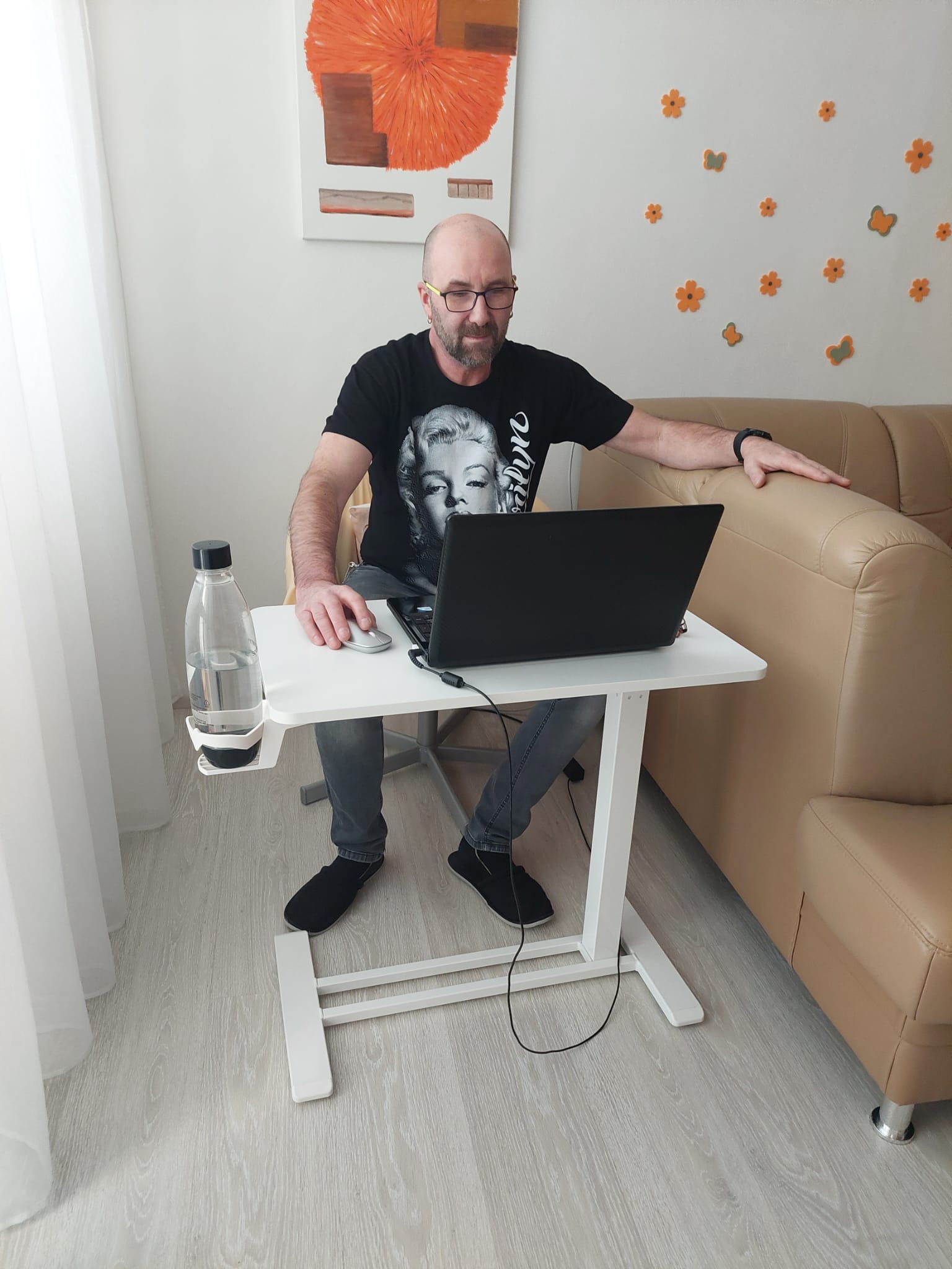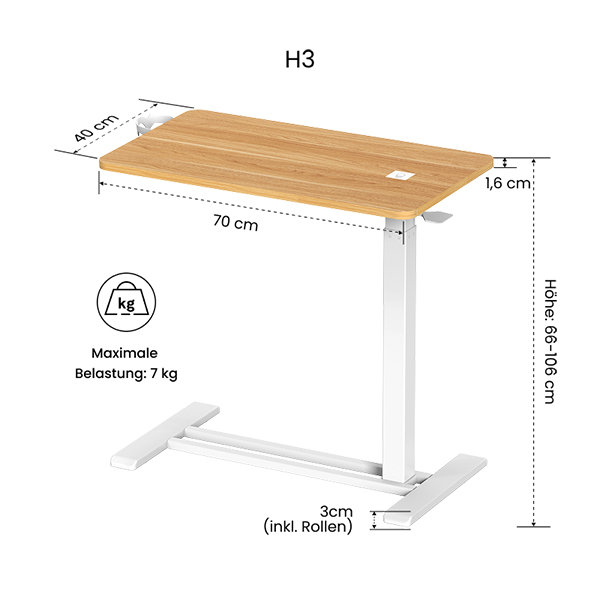 Ręcznie regulowany stół biurowy i roboczy z czterema ukrytymi kółkami to idealne przenośne stanowisko pracy do domu lub biura. Wbudowany gazowy siłownik umożliwia łatwą i płynną regulację wysokości w zakresie 660 - 1060 mm. Na blacie znajduje się praktyczny uchwyt na napoje. Stół jest w białym kolorze. Wymiary: 660 - 1060 x 700 x 400 mm.