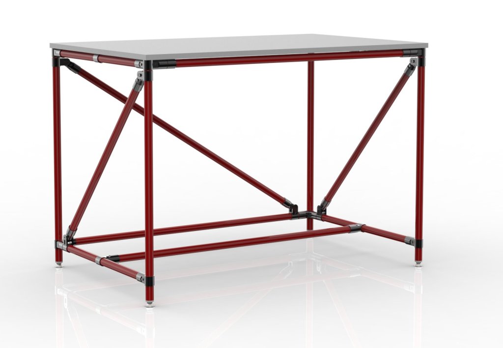 Stół warsztatowy wykonany z rurowego systemu modułowego z blatem DTDL o grubości 18 mm, kontenerek stołowy i 4 regulowane nogi. Nośność przy równomiernym obciążeniu 100 kg. Wymiary 850 x 2000 x 750 mm.