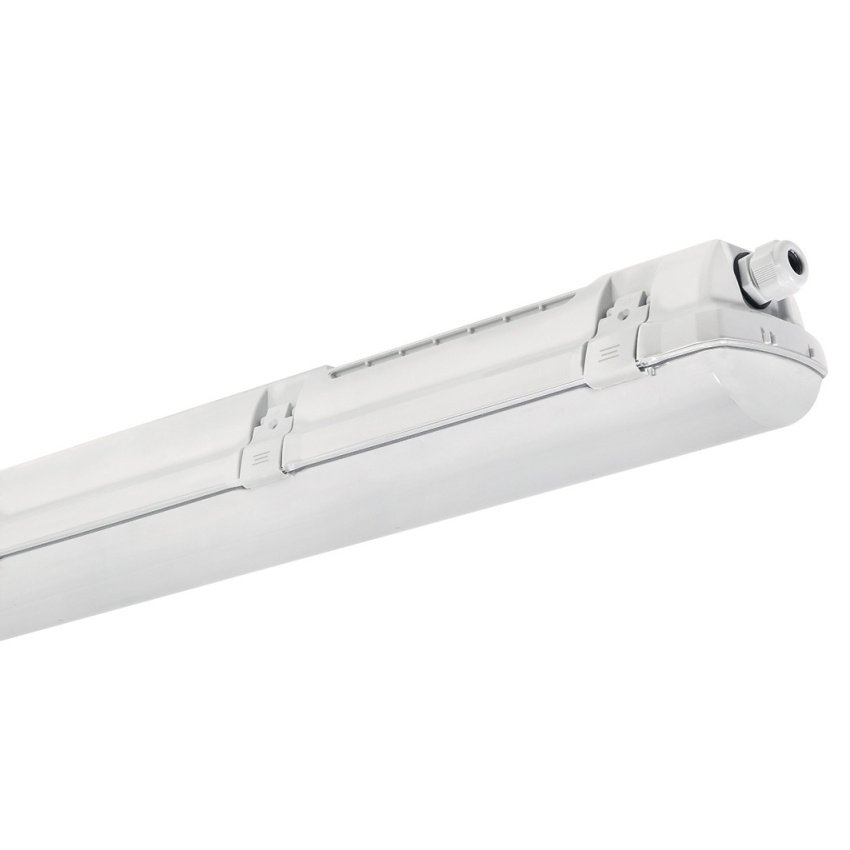 Wytrzymała lampa przemysłowa PRIMA 1,5 stopy PC 8000/840 została zaprojektowana do wymagających środowisk, w których wymagana jest wysoka odporność mechaniczna, pyłoszczelność, wodoodporność i długa żywotność. Nadaje się również do przemysłu spożywczego i zakładów z wymaganiami HACCP. BEZ PRZEWODU ZASILAJĄCEGO