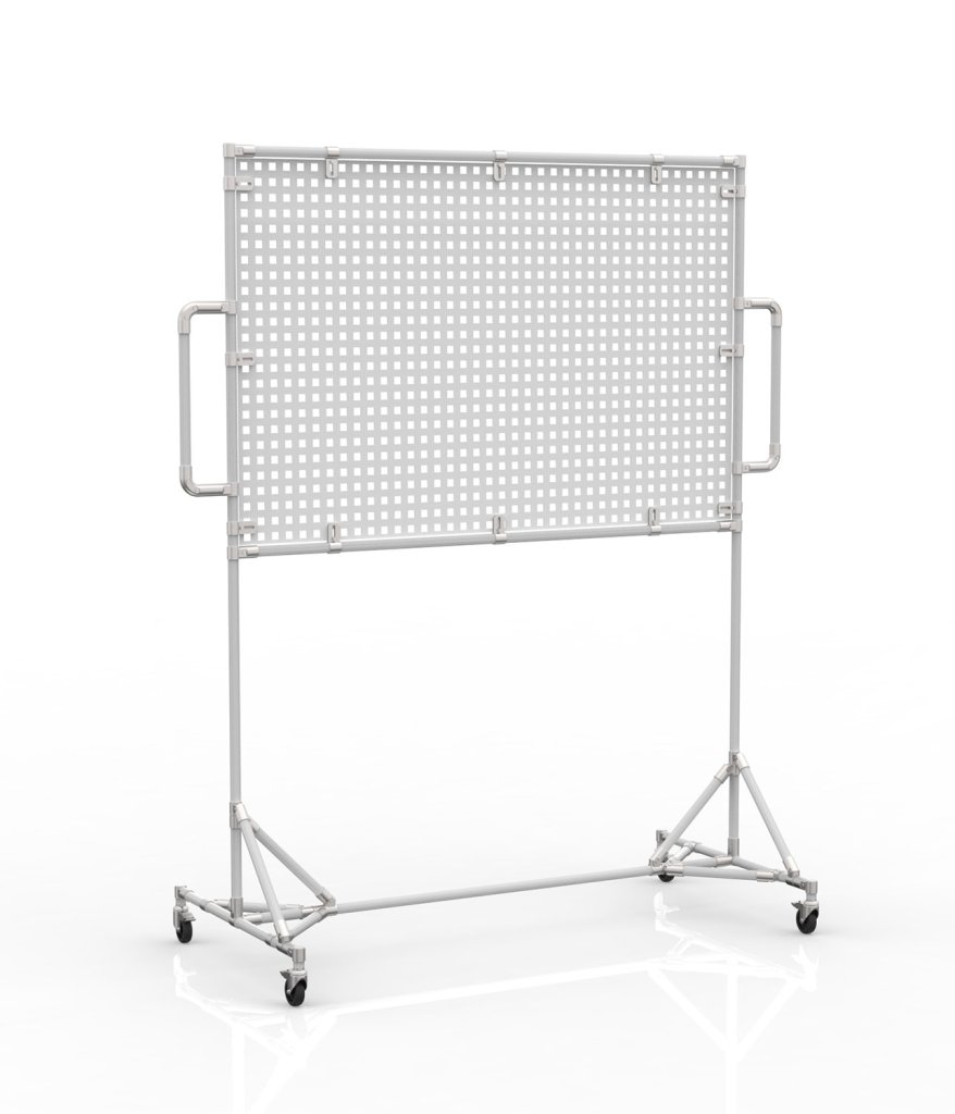 Jednostronna tablica mobilna z perforowanym panelem do praktycznego mocowania skrzynek do przechowywania lub materiałów. Dzięki praktycznym kółkom deskę można łatwo i bez wysiłku przesuwać. Idealny do szkół, biur lub sal konferencyjnych. Deska wyposażona jest w uchwyty po obu stronach, ułatwiające manipulację. Wysokość 2170 x szerokość 1603 x głębokość 816 mm.