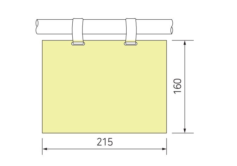 Kieszonkowa zawieszka na etykiety o wymiarach 215 x 160 mm. Plastikowy haczyk do zawieszenia nie jest dołączony do opakowania.
