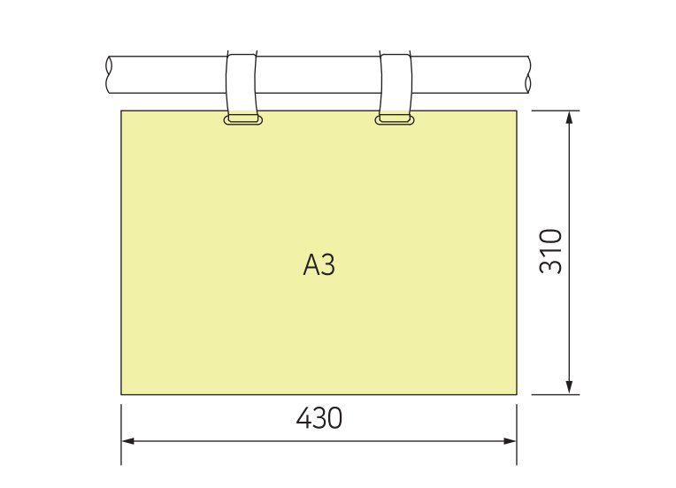 Kieszonkowa zawieszka na etykiety o wymiarach 430 x 310 mm. Plastikowy haczyk do zawieszenia nie jest dołączony do opakowania.