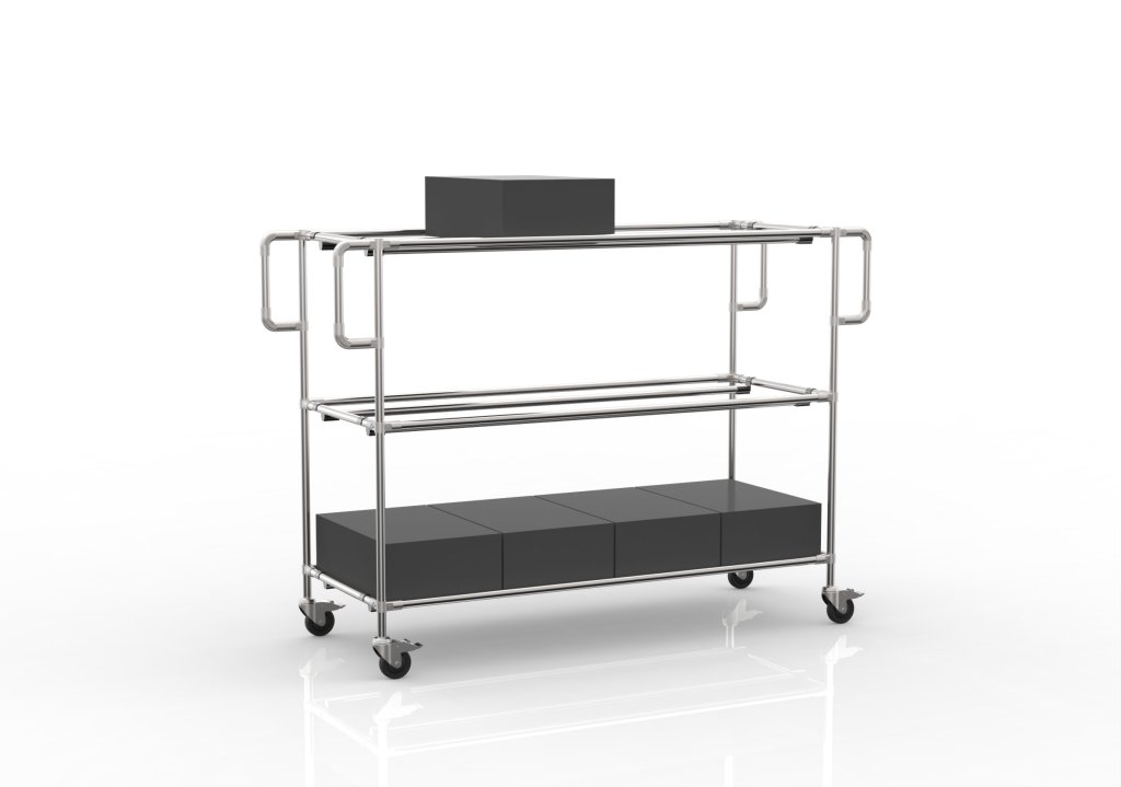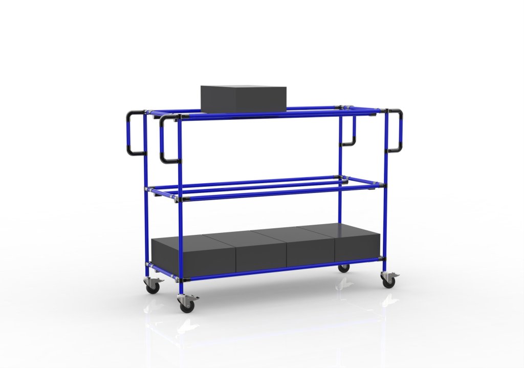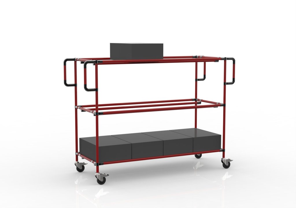 Pomocniczy wózek kompletacyjny z rurowego systemu modułowego. Dzięki ergonomicznej konstrukcji z uchwytami wózek jest łatwy w pełny opis i parametry