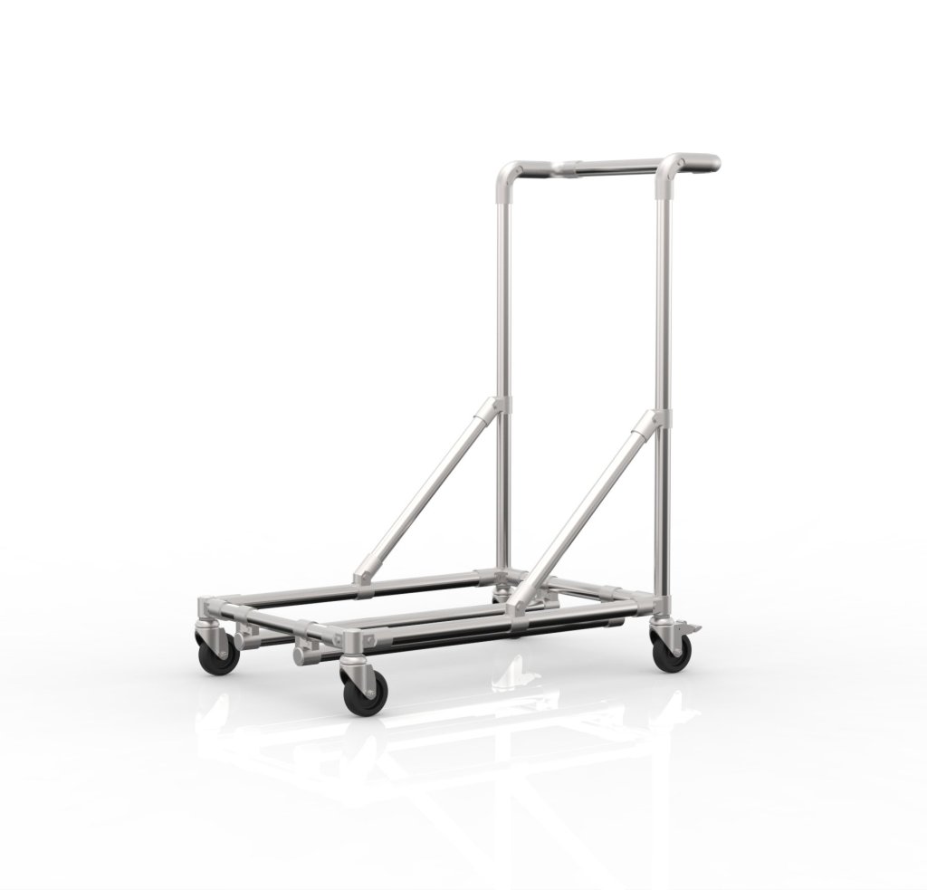 Podwozie manipulacyjne z uchwytem wykonanym z systemu rurowego nadaje się do różnych celów manipulacyjnych w magazynach i warsztatach. Podwozie zawiera 2 kółka skrętne z hamulcem i 2 kółka skrętne bez hamulca o średnicy 75 mm, które umożliwiają łatwe przemieszczanie przedmiotów. Wymiar wewnętrzny przeznaczony jest dla pudełka o wymiarach 600 x 400 mm. Wymiary 678 x 478 x 900 mm.