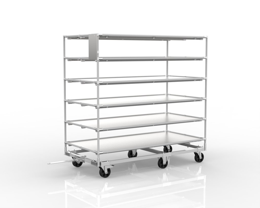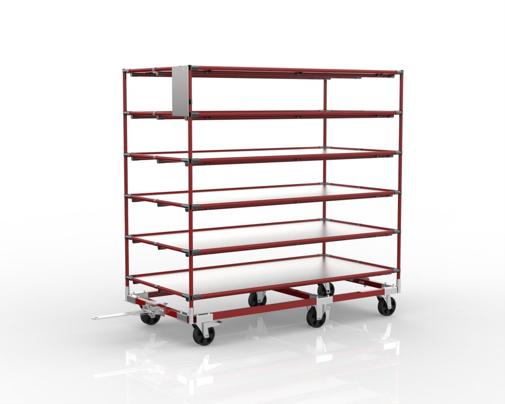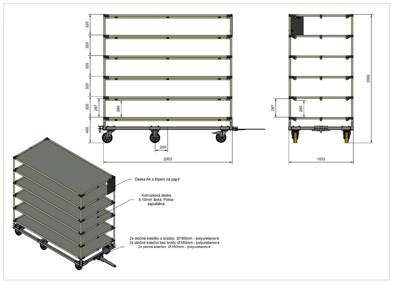 Wózek półkowy wykonany na podwoziu stalowym z nadbudową w systemie rurowym. Możliwość podłączenia większej liczby wózków w ciągu. pełny opis i parametry