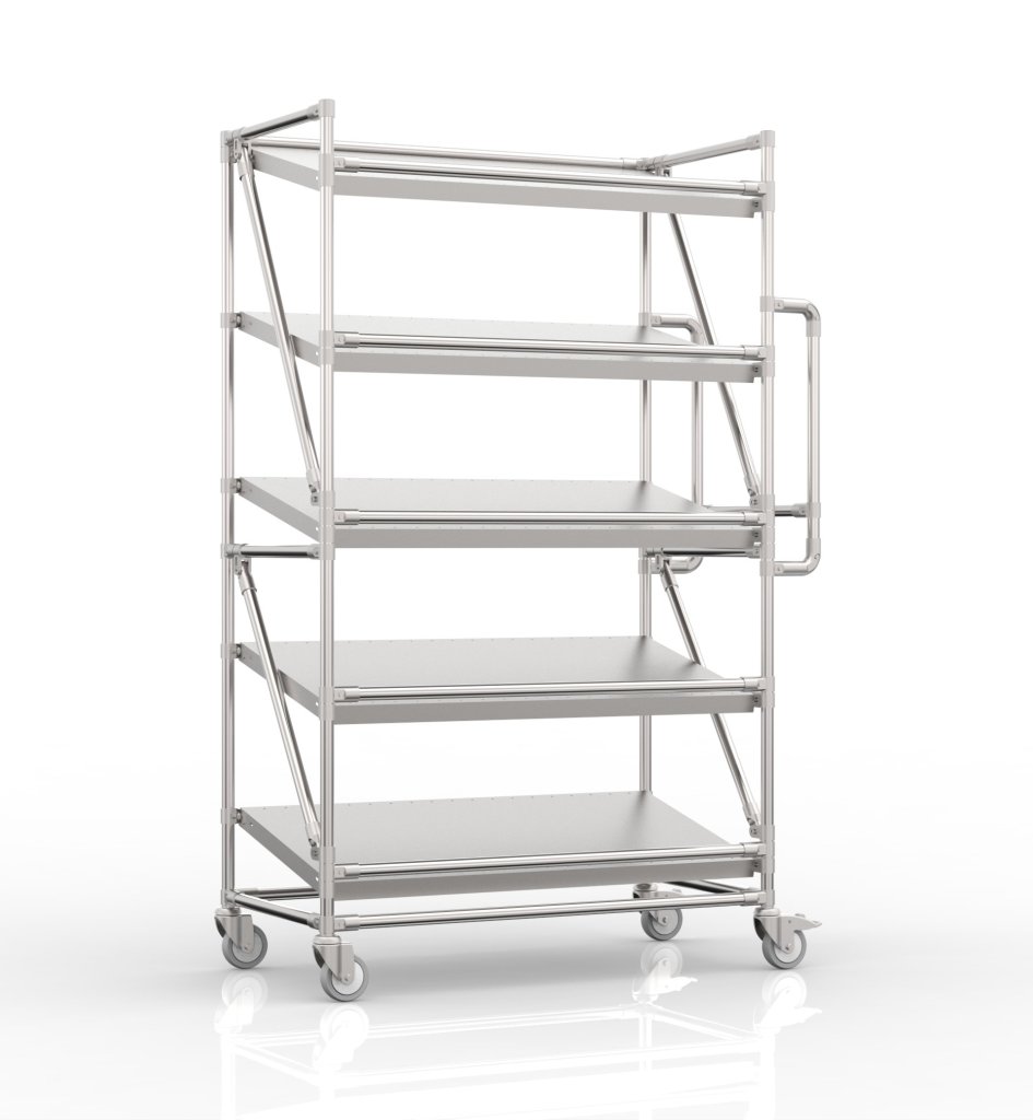 Wózek zawiera dwa kółka skrętne z hamulcem i dwa kółka skrętne bez hamulca o średnicy 100 mm. Zaletą tych kół są niskie opory toczenia i dzięki temu wygodne prowadzenie. Istnieje możliwość zmiany konfiguracji kół w zależności od wymagań klienta. Wózek wyposażony jest także w ergonomiczny uchwyt zapewniający łatwiejszą i wygodniejszą obsługę. Nośność całkowita 300 kg, nośność na półce 60 kg. Wymiary 1807 x 1066 x 567 mm.
