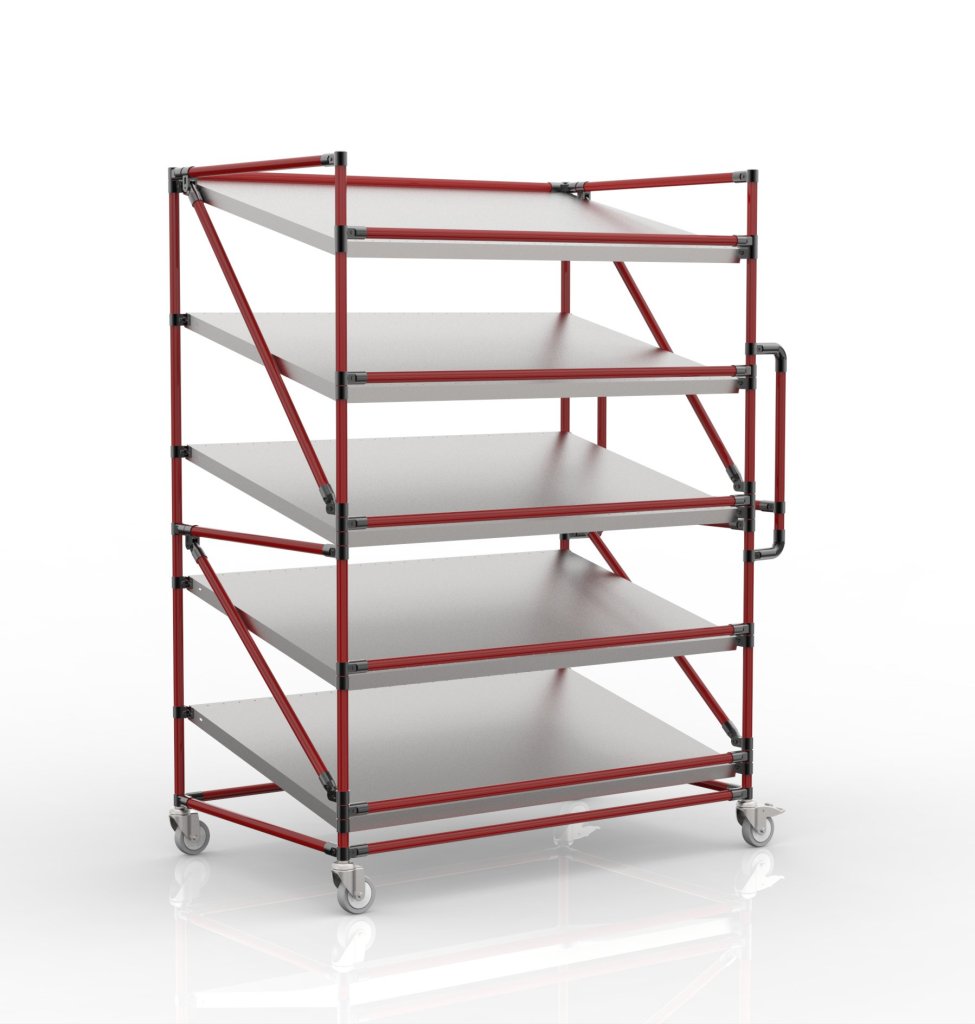 Aplikacja dostosowana, wszystkie wymiary można dostosować do potrzeb klienta. Rurki dostępne są w kilku kolorach oraz w wariancie ESD lub ze stali nierdzewnej (odpowiednie dla gastronomii).