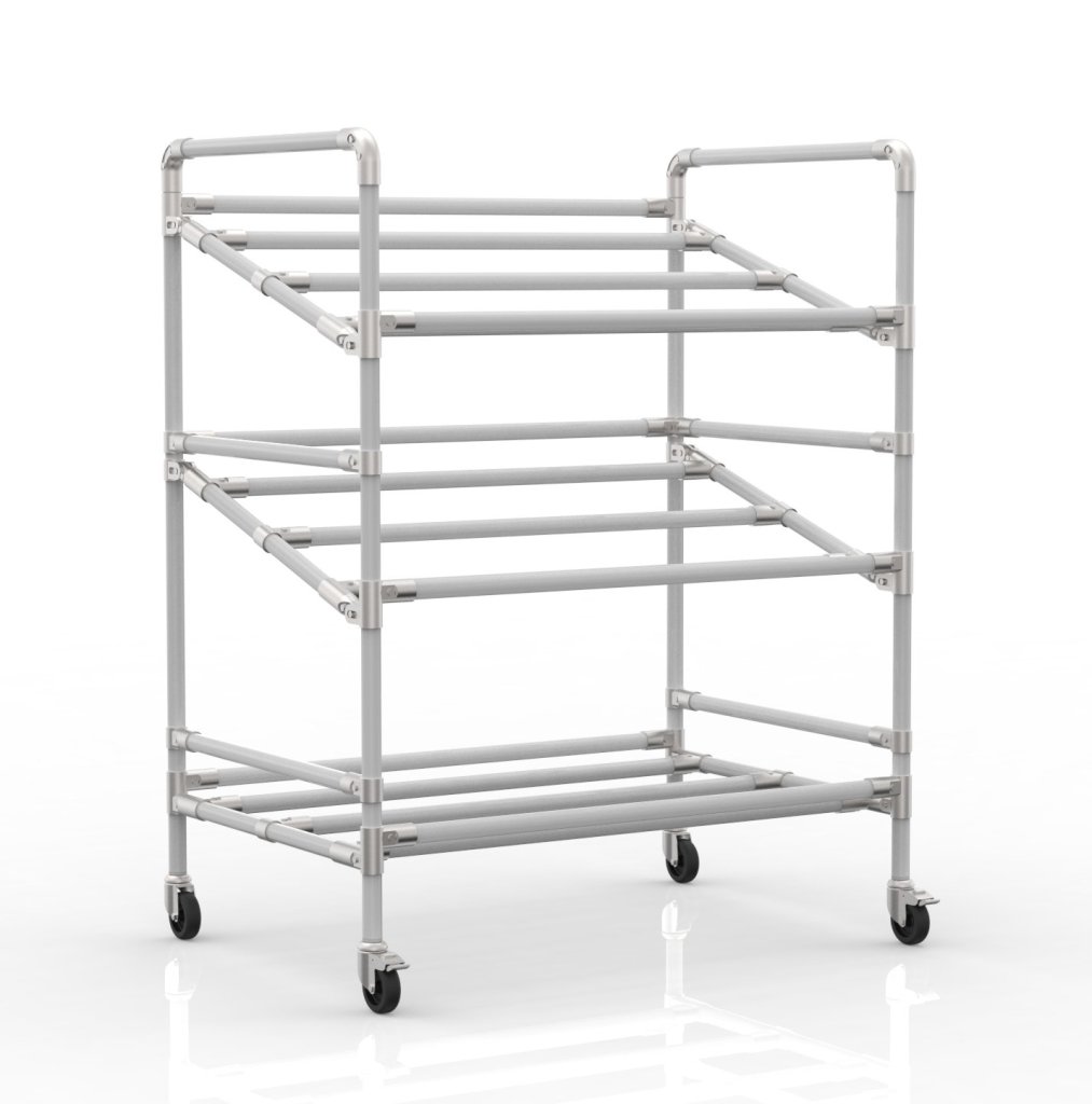 Aplikacja dostosowana, wszystkie wymiary można dostosować do potrzeb klienta. Rurki dostępne są w kilku kolorach oraz w wariancie ESD lub ze stali nierdzewnej (odpowiednie dla gastronomii).