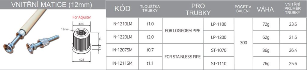 Korek stalowy wewnętrzny z gwintem M12 typu IN-1210LM. Do rur Logiform typu LP-1100 o grubości ścianki 1 mm. pełny opis i parametry
