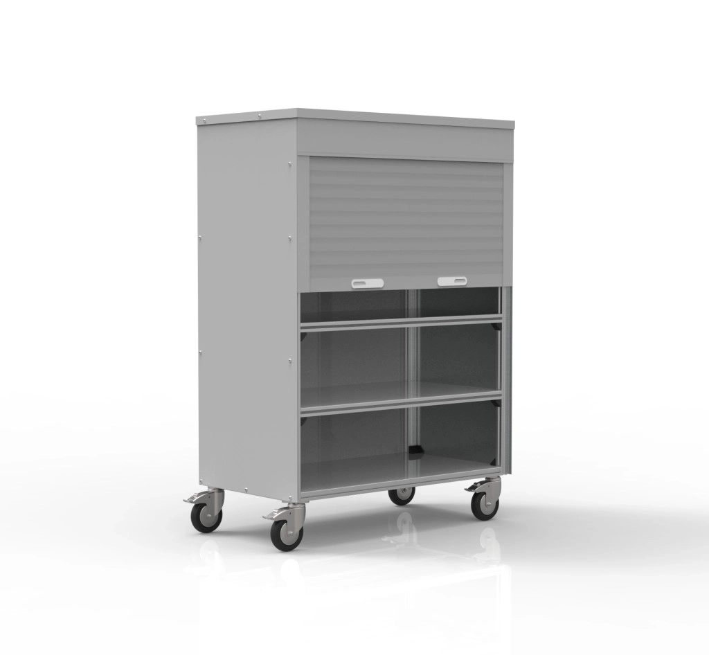 Potrzebujesz mieć narzędzia, materiały lub dokumentację zawsze pod ręką i jednocześnie bezpiecznie przechowywane? Wózek półkowy z roletą to idealne rozwiązanie dla warsztatów, stanowisk serwisowych i zaplecza operacyjnego. Łączy trwałą konstrukcję z profili aluminiowych z obudową ze stali nierdzewnej i oferuje trzy stałe półki, z których każda ma nośność 75 kg. Łączna ładowność wynosi do 300 kg. Plastikowa roleta chroni zawartość przed kurzem i nieautoryzowanym dostępem, a dzięki obrotowym kółkom z hamulcem (⌀ 125 mm), wózek jest łatwy w manewrowaniu nawet w wąskich przestrzeniach. Wymiary 1443 × 1003 × 554 mm zapewniają dużo miejsca do przechowywania bez zajmowania niepotrzebnej przestrzeni. Poznaj wózek półkowy, który łączy funkcjonalność, bezpieczeństwo i elegancki wygląd w jednym kompaktowym rozwiązaniu do codziennego użytku.