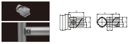 Złącze aluminiowe AJA-01B_H. Cena za 1 szt. bez materiałów łączących. Ze względu na swą wytrzymałość, złącza te są kompatybilne wyłącznie z produktami oznaczonymi jako HEAVY. Waga 47 g.